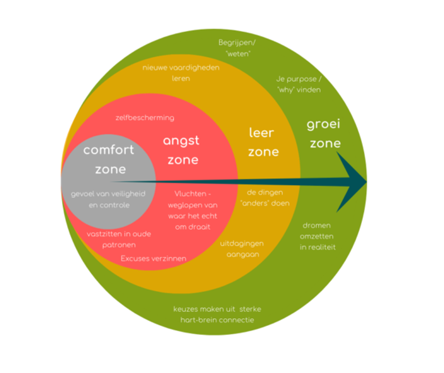 “Nu is het tijd om uit je comfort- en angstzone te komen.” Als ik het zeg schieten haar ogen alle kanten op, als een angstig klein meisje, bang om het fout te doen en tegelijkertijd vragend, alsof ik haar niet heb begrepen.