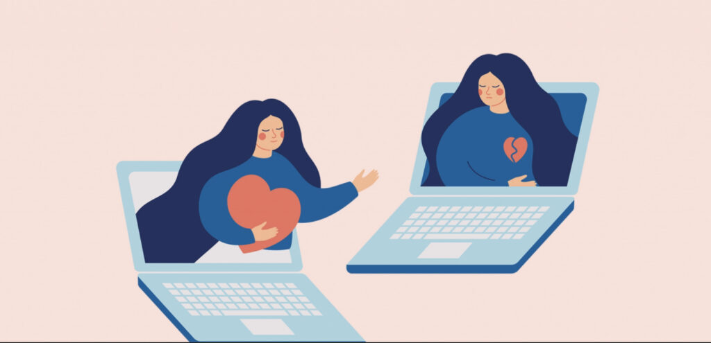 Voor me zit Mariken, diep in tranen, het hoofd gebogen, de handen in haar schoot en ze wordt steeds kleiner. Het kleine meisje met de rode krullen is zijzelf. Ze staat ‘op de gang’, de deur is op een kier, maar Mariken kan niet naar haar kijken, hoe graag ze zichzelf ook zou willen troosten en zeggen dat het goed komt. De pijn is voelbaar en snijd door mij heen als een mes. We zijn gescheiden door ons computerscherm en 160 kilometer en wat zou ik graag willen dat ik nu even echt bij haar was.